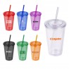 16 Oz Double Wall Acrylic Tumbler With Straw