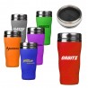 16 oz insulated double wall travel tumbler mug. Acrylic exterior and stainless steel liner. Translucent colored acrylic outer. Stainless steel liner. The rubbery finish and curvy body gives the tumbler a high perceived value. Push-on stainless steel lid. Non-slip base pad. BPA Free. Stainless items are not dishwasher or microwave safe. The color of the acrylic exterior can be custom PMS matched. Ideal for schools, fitness clubs, credit unions, banks, healthcare centers, hospitals, car dealerships, and more!