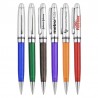 Plastic retractable click/push/plunger action ballpoint pen. Metal clip. Metallic silver upper barrel. Chrome middle ring and tip. Translucent frosty colored grip. Black or blue ink. You can’t go wrong with pens as they are appropriate for all industries and the most economical promotional product. An excellent giveaway at the next tradeshow or convention you attend. Perfect for educational sectors, schools, colleges, universities, seminars, job fairs, banks, credit unions, saving and loan associations, financial companies, pharmaceutical, healthcare and medical centers, hospitals, military, political rallies, hotels, restaurants, gyms and fitness centers, fund raisers, charities, awareness programs, churches, entertainment and media, sports games, insurance providers, and much more!